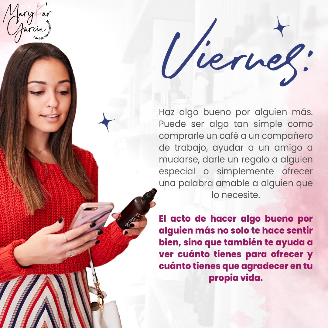 Marykar es activista, coach de gratitud y fundadora de Gratitude Giving Foundation, especializada en inteligencia emocional, autoestima y amor propio. En Agencia Metabyte colaboramos en la creación de contenido enfocado en promover sus sesiones de coaching, donde guía a las personas a reconectar con su plenitud, apreciar los pequeños momentos y cultivar el bienestar emocional.