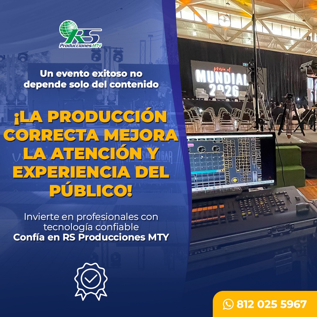 RS Producciones Mty es una empresa especializada en la renta de equipo de alta calidad para eventos masivos, ofreciendo soluciones integrales en audio, iluminación e infraestructura para cualquier tipo de celebración o espectáculo. En Agencia Metabyte creamos contenido visual informativo y atractivo que comunica de forma efectiva su profesionalismo y capacidad técnica.